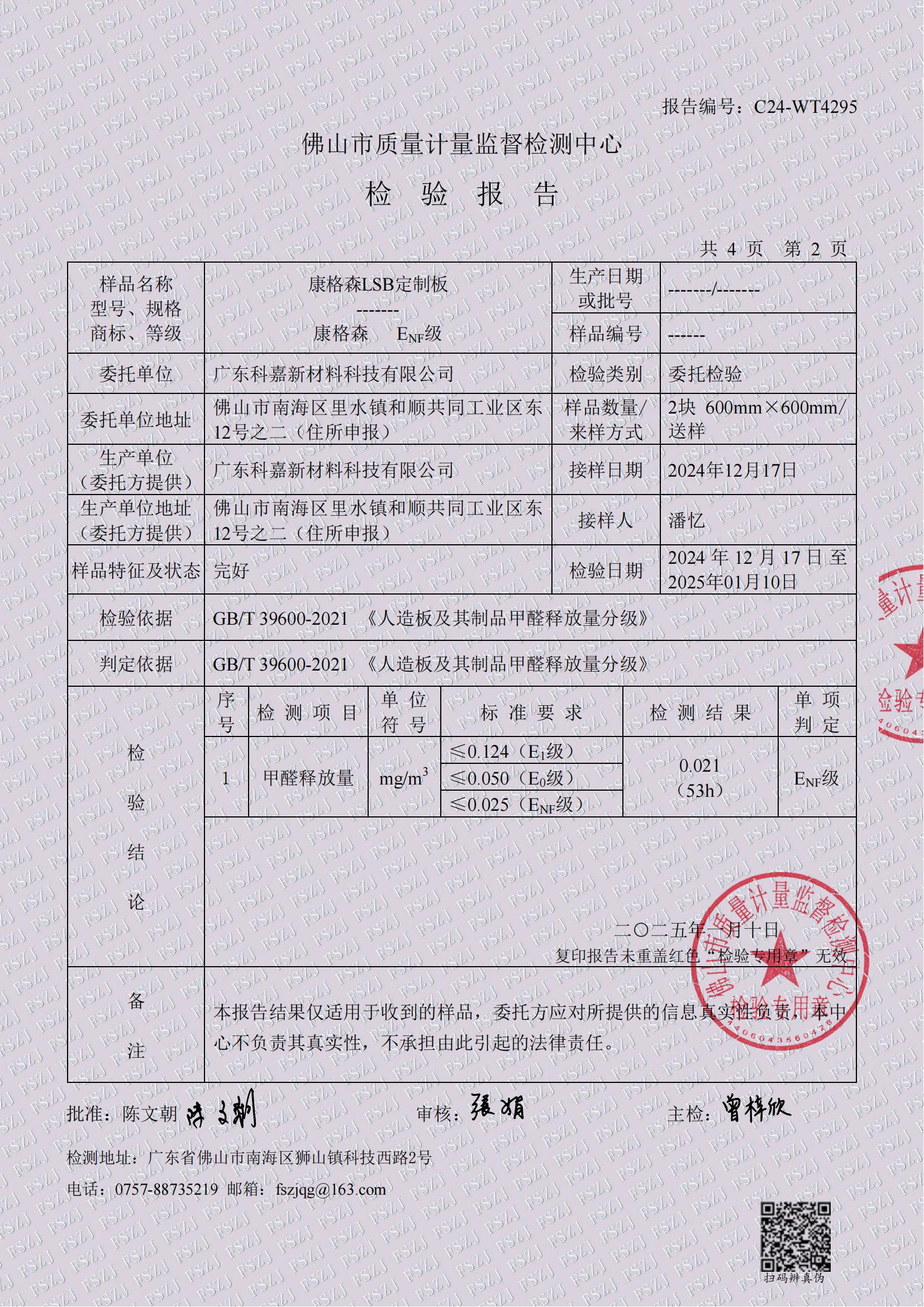 康格森LSB定制板检验报告